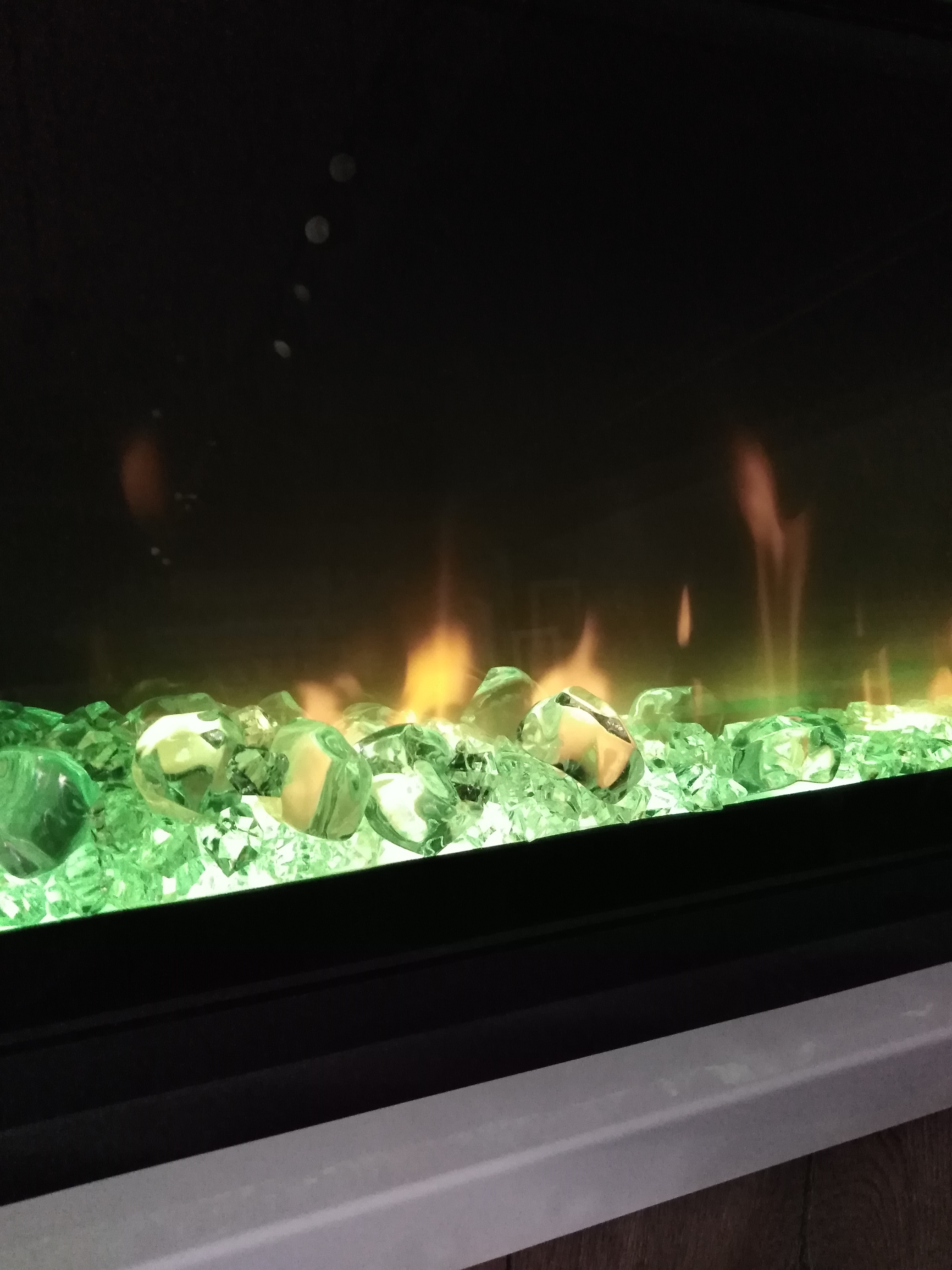 Иногда в моделях используются шелковые лоскуты, изображение которых проецируется на заднюю панель камина, имитируя огонь.