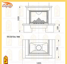 Притопочная и надтопочная часть выполнена из шамота песочно-желтого цвета. Каминная балка, изготовленная из МДФ и шпонированная дубом, послужит отличной полкой для каминных аксессуаров, таких как часы, канделябры, рамки с фотографиями и др.