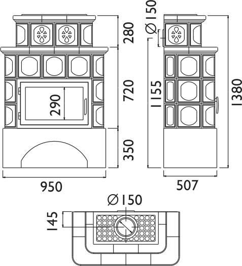 - Диаметр дымохода, (мм) 150